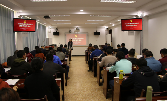 为进一步推动全面从严治党向基层延伸,切实提高党建工作质量,履行基层党建工作责任,按照学院党委相关部署要求🪚🤢,于2024年1月11日下午在院五层多功能教室召开2023年度党支部书记述职评议考核会💇🏼。院党委委员,各党支部书记、委员,中层干部,教职工代表参加会议🚶,会议由院党委副书记张颖茜主持。