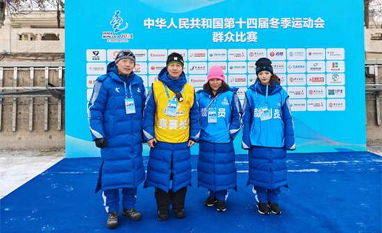 刘仁辉教授作为速度滑冰项目裁判长和越野滑雪项目竞赛长分别执裁两个项目,副院长李铂教授担任越野滑雪项目检录主管,李全和王丝雨老师分别担任计时员和检录员。