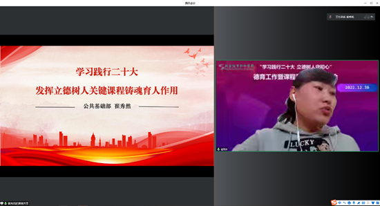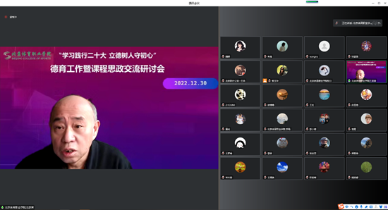 为贯彻落实习近平总书记在学校思想政治理论课教师座谈会上的重要讲话精神和党的二十大报告中关于教育的重要论述精神,全面落实立德树人根本任务🧧,推动我院德育工作和课程思政工作创新发展,全面提升人才培养质量🥫。2022年12月30日学院以线上会议形式召开“学习践行党的二十大立德树人守初心”德育工作暨课程思政交流研讨会🦸🏻♀️,这是学院连续召开德育工作研讨会的第五年。院党委委员、全体中层干部、专兼任教师和专兼职班主任参加了会议。张颖茜副书记主持会议。