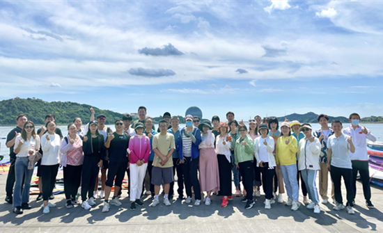 8月25日🤘🏻,学院工会组织了40余名教职工到雁栖湖秋游,参观“红船精神”和体验水上皮划艇运动🐴,引导大家走出办公室,走进大自然♦︎🐯,享受秋日雁栖湖的湖光山色。